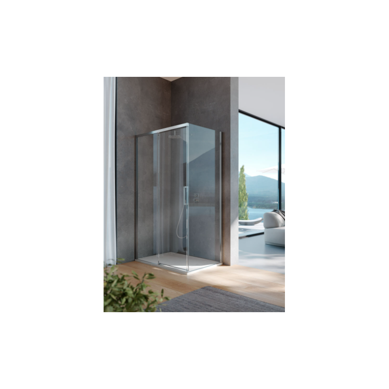 Box doccia per installazione angolare adatto a spazi doccia 80x120 cm, profilo cromo, vetro extra chiaro, spessore 8mm.
