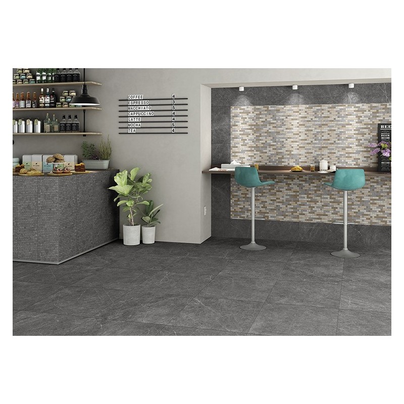 Pavimento in gres porcellanato effetto pietra, adatto alla posa in ambienti interni.