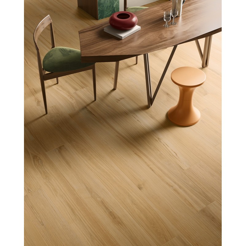 Pavimento in gres porcellanato effetto legno, perfetto per donare continuità e armonia agli spazi interni, combinando calore naturale, durabilità e design moderno.
